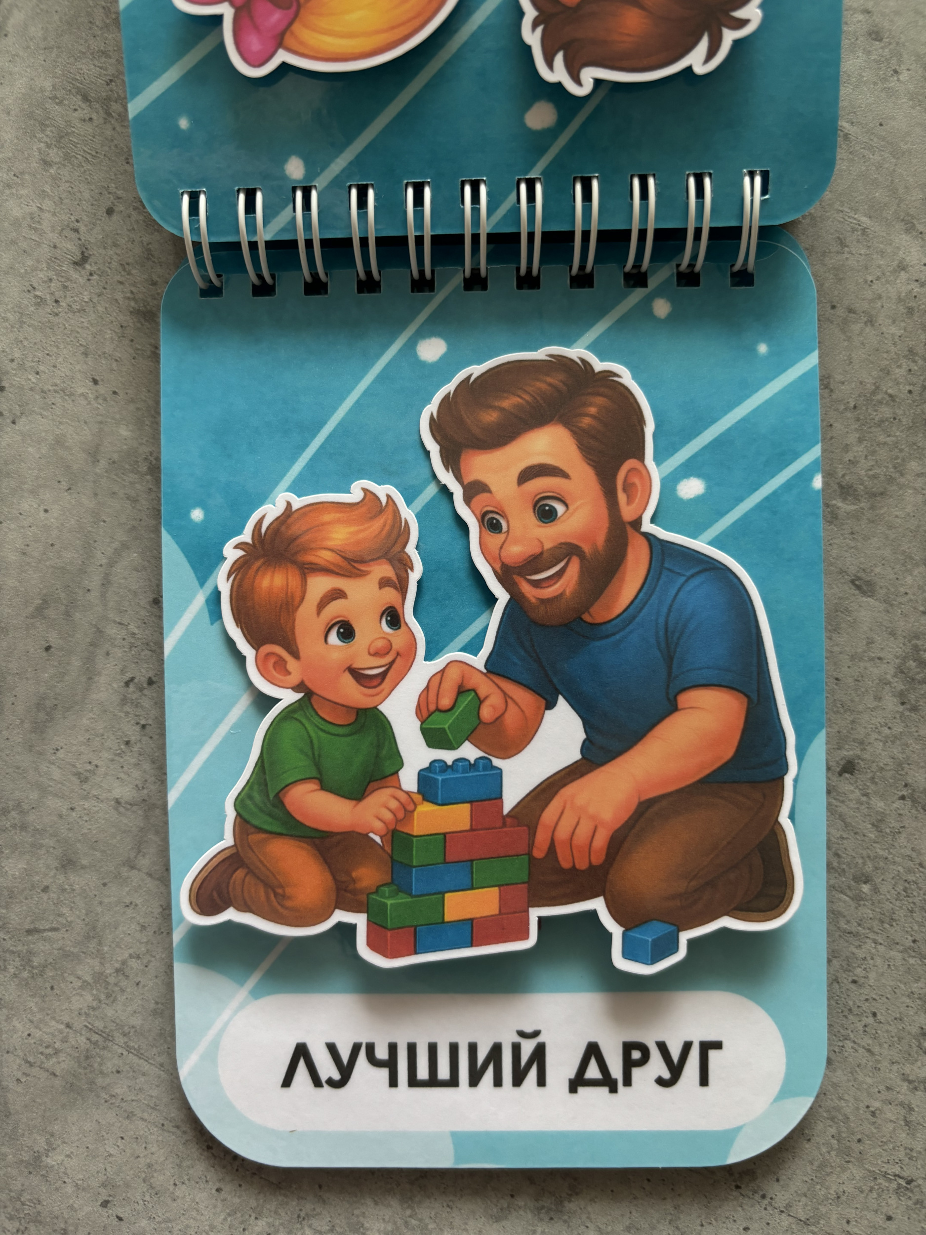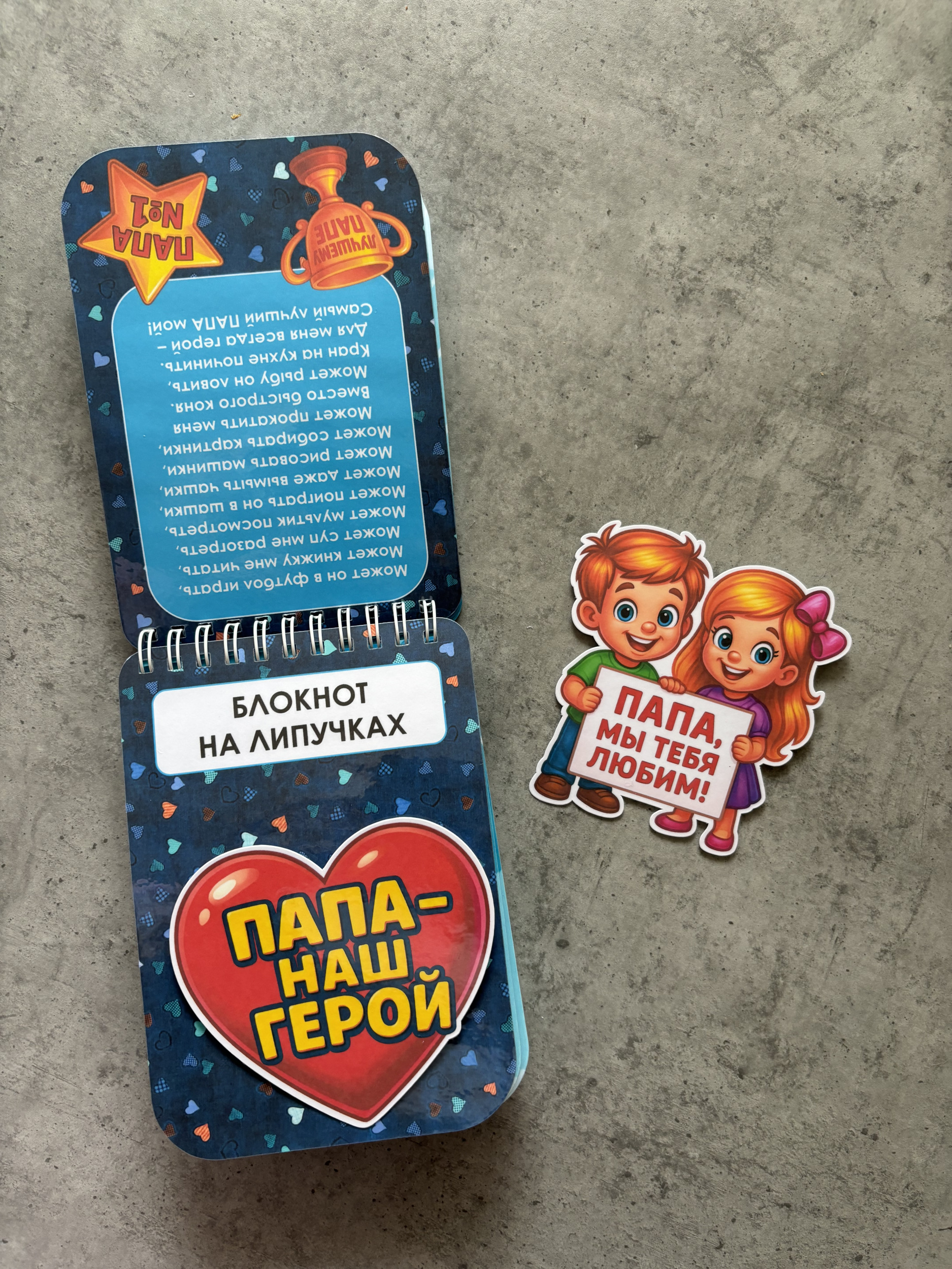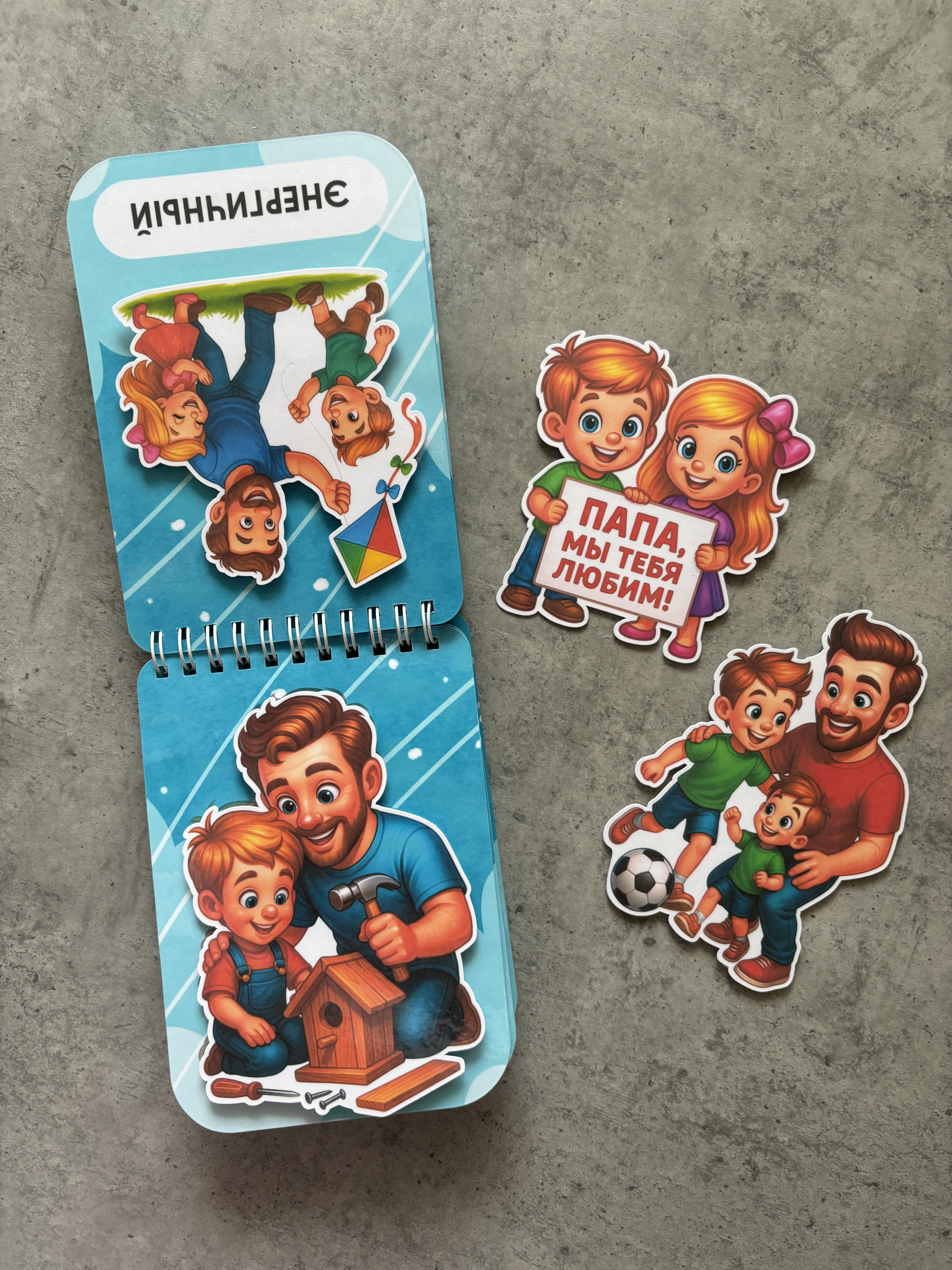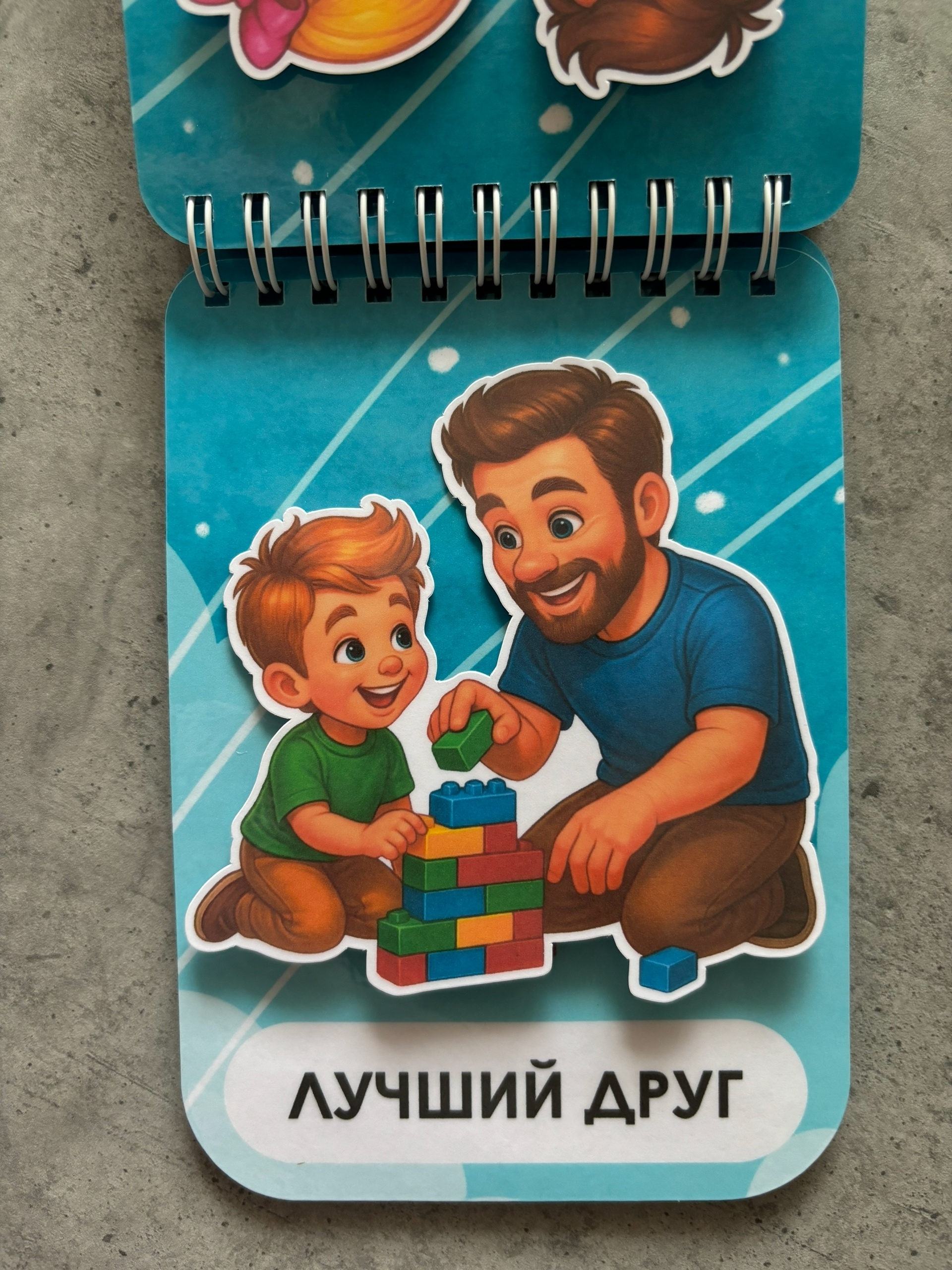 - 16 страниц с тематическими изображениями и надписями о том, какой он - папа.