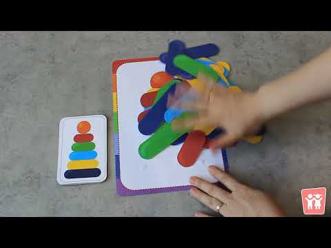 Задача: продолжать учить детей собирать пирамидки по образцу, соотнося колечки по размеру и цвету.