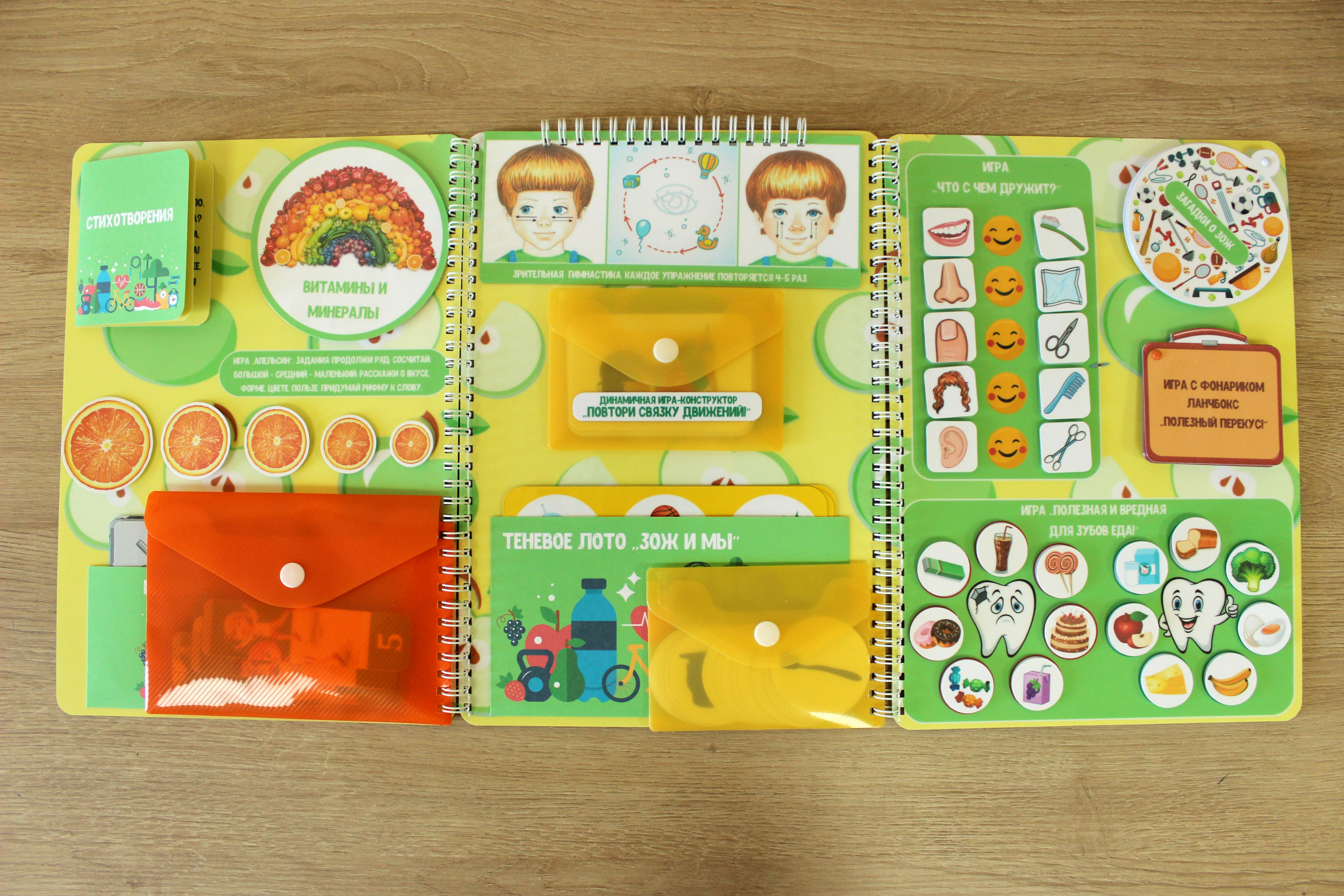 В игровой форме дети узнают всё о здоровом образе жизни: как правильно мыть руки, как и зачем делать зрительную гимнастику, какие продукты наносят вред зубам, а какие безопасны; каким должен быть полезный перекус, в каких продуктах живут жизненно важные витамины и минералы, познакомятся со здоровым режимом выходного дня и это еще не все!
