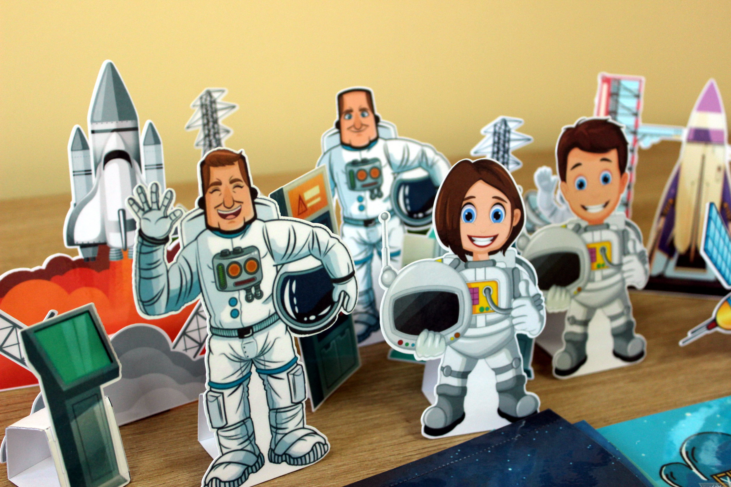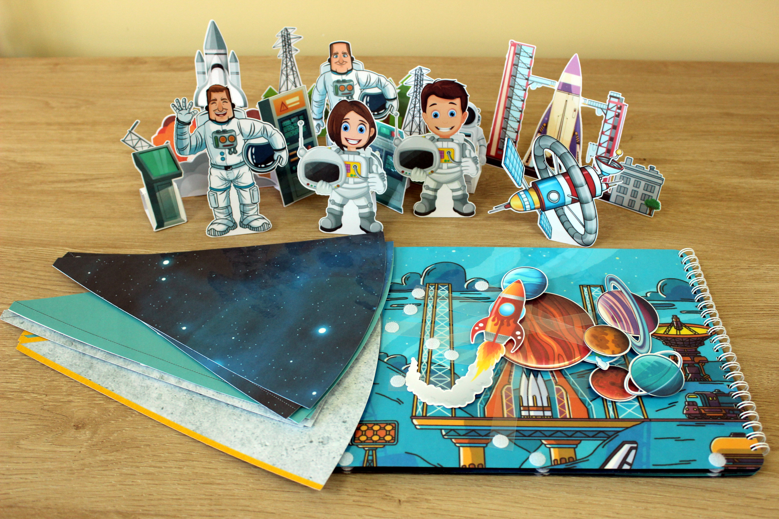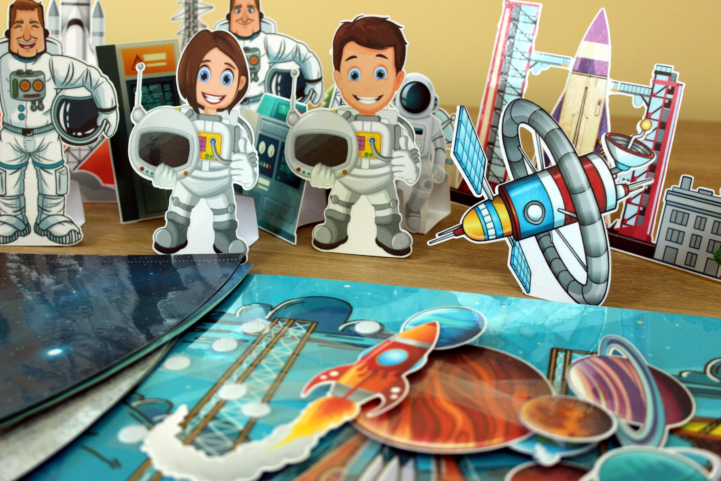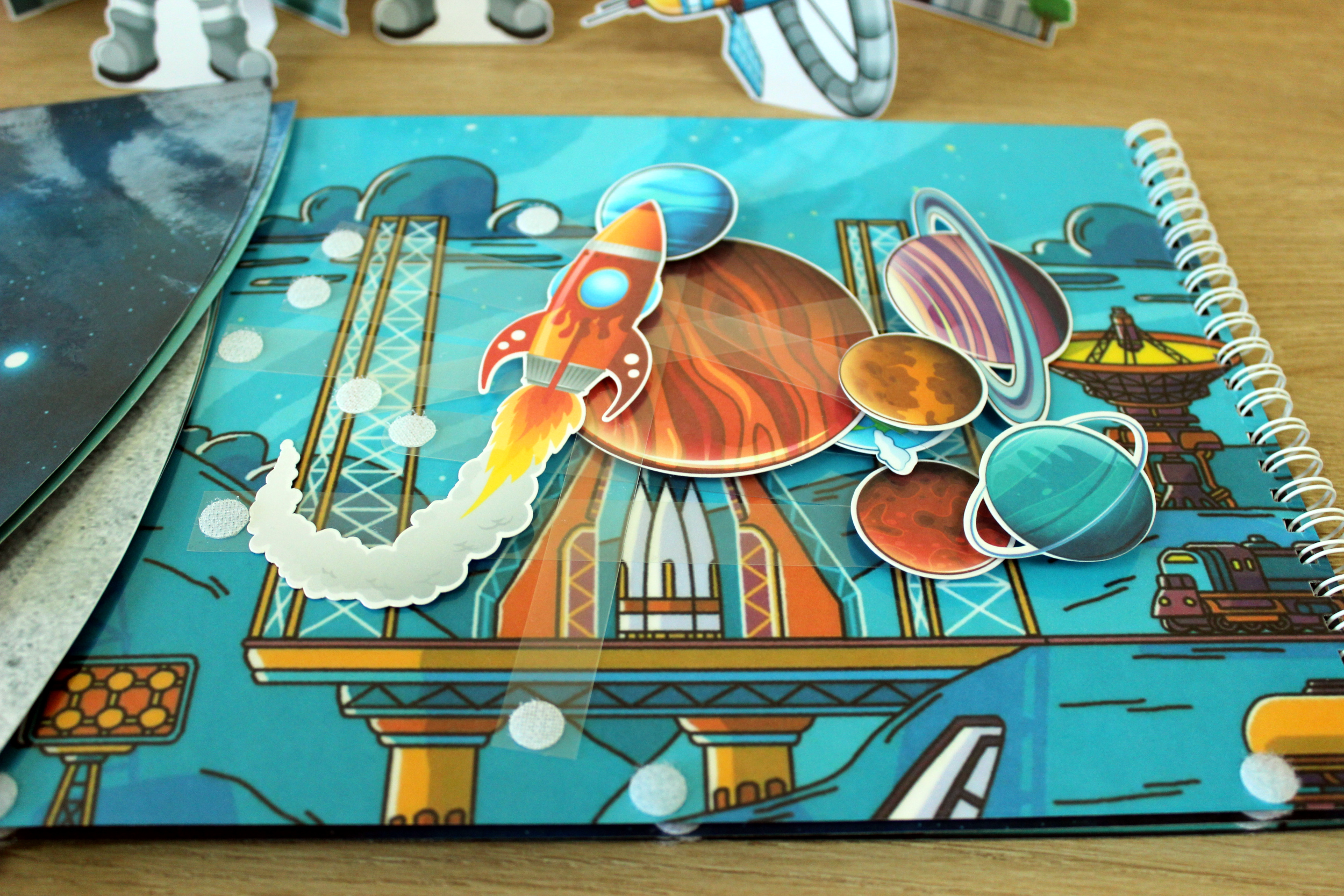 Ракета, метеориты, запчасти космического корабля крепятся на фон на липучки (по желанию).