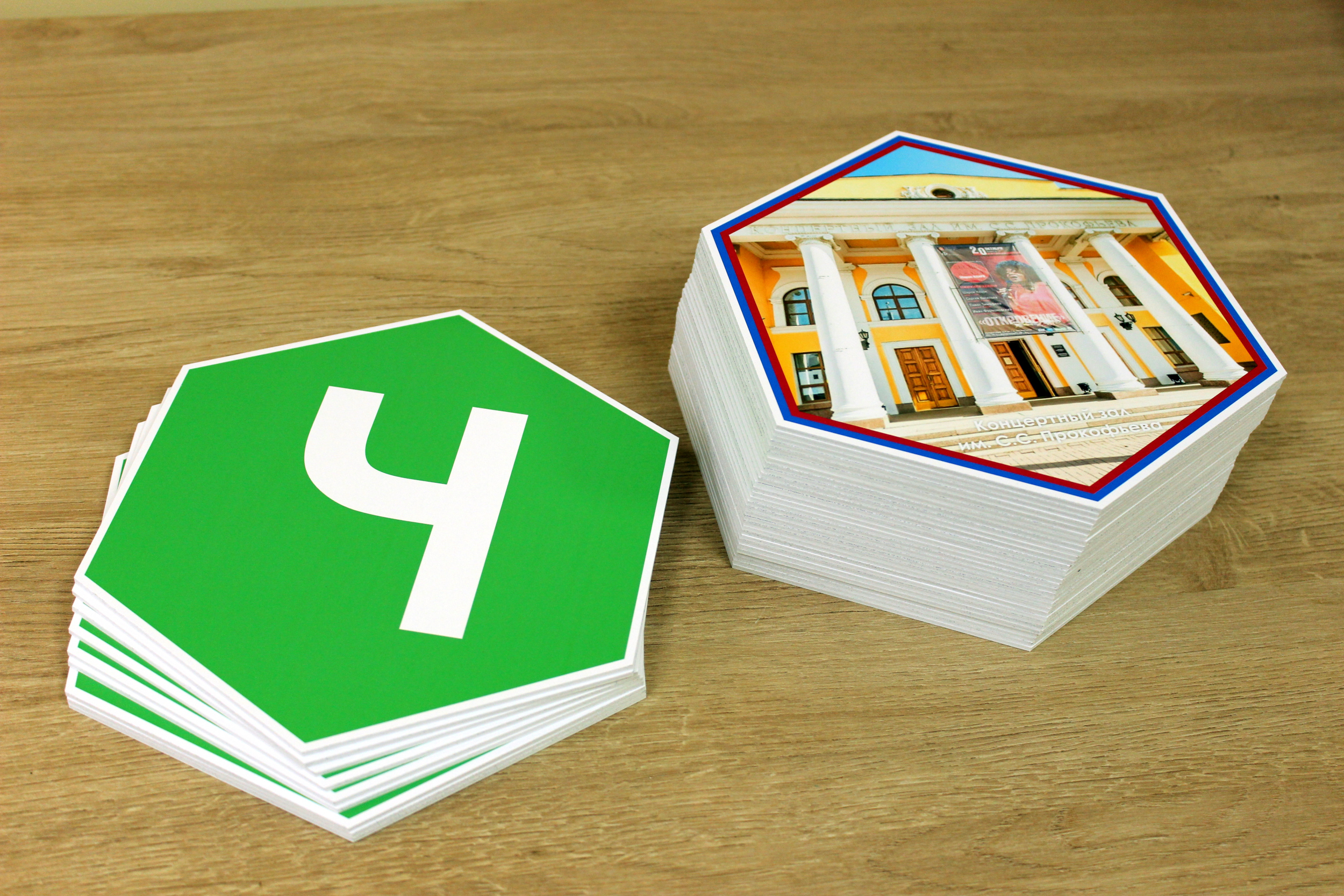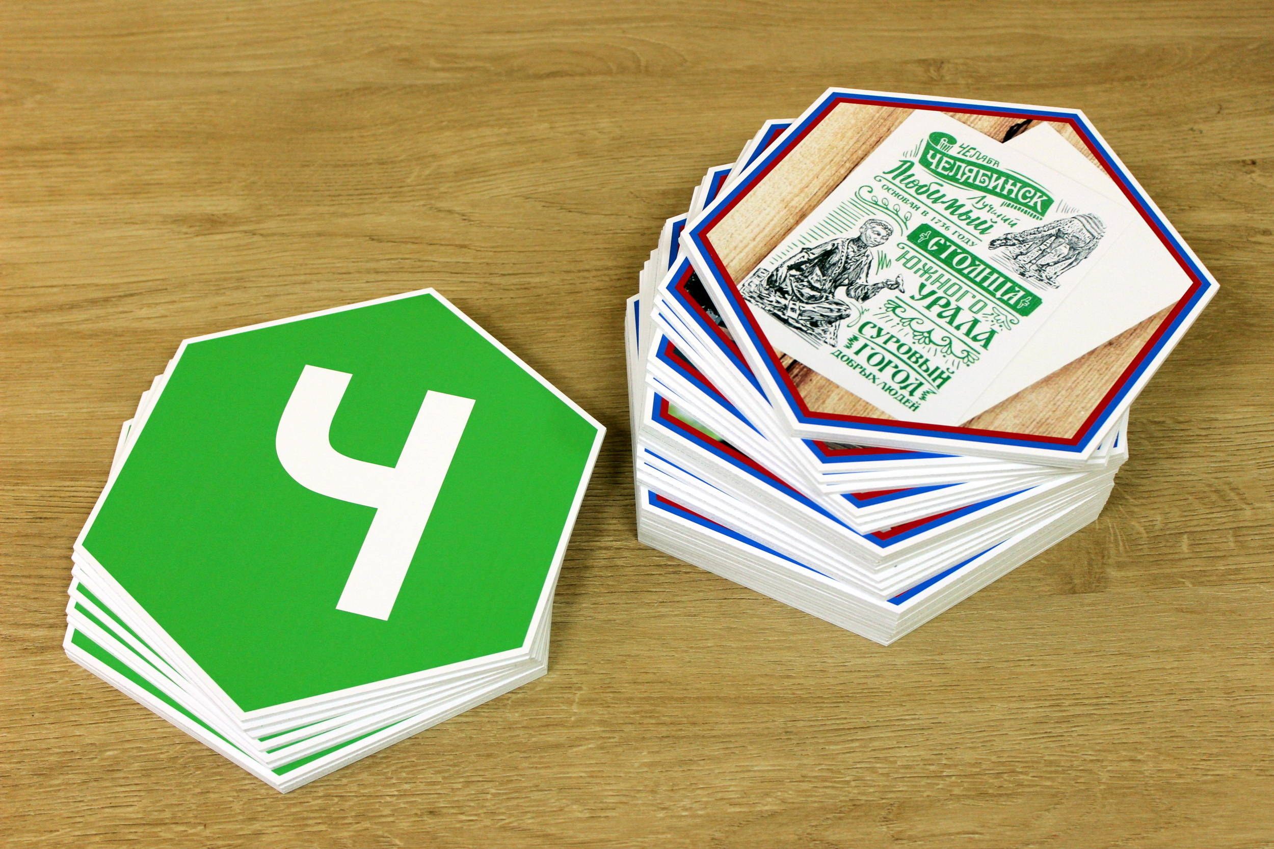 - 30 шестиугольников (каждый - лист А4) с достопримечательностями, официальными и неофициальными символами Челябинска и др.